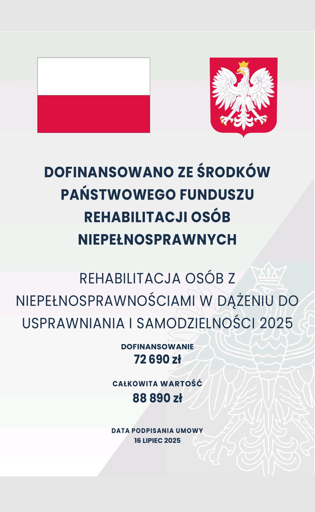 Projekt dofinansowany jest ze środków PFRON będących w dyspozycji Samorządu Województwa Podkarpackiego – Regionalnego Ośrodka Polityki Społecznej w Rzeszowie